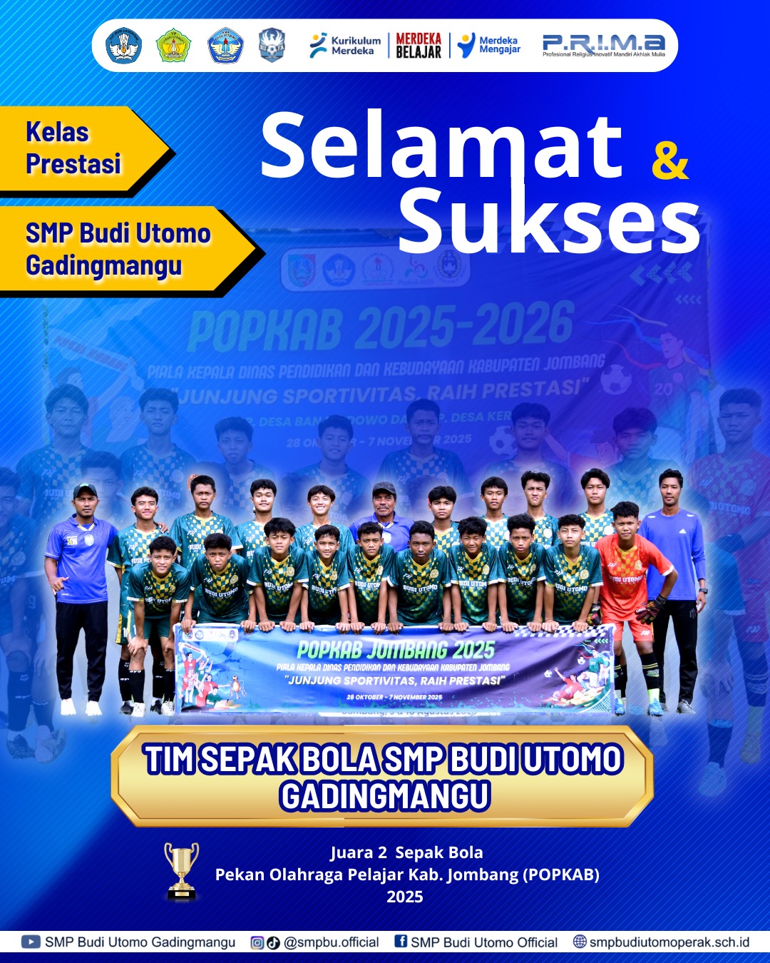 Selamat kepada Tim Sepak Bola SMP Budi Utomo Gadingmangu atas prestasi luar biasa ini!